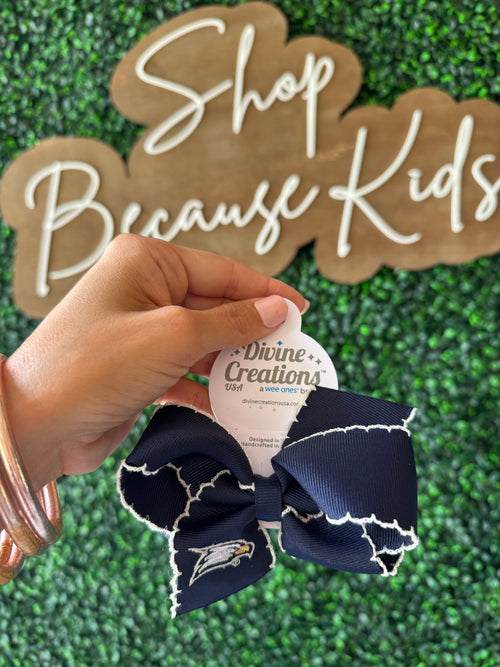 GS Medium Grosgrain Hair Bow with Moonstitch Edge and Embroidered Collegiate Logo