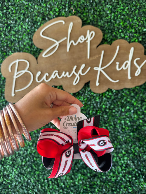 UGA Medium Grosgrain Hair Bow with Moonstitch Edge and Embroidered Collegiate Logo - Georgia