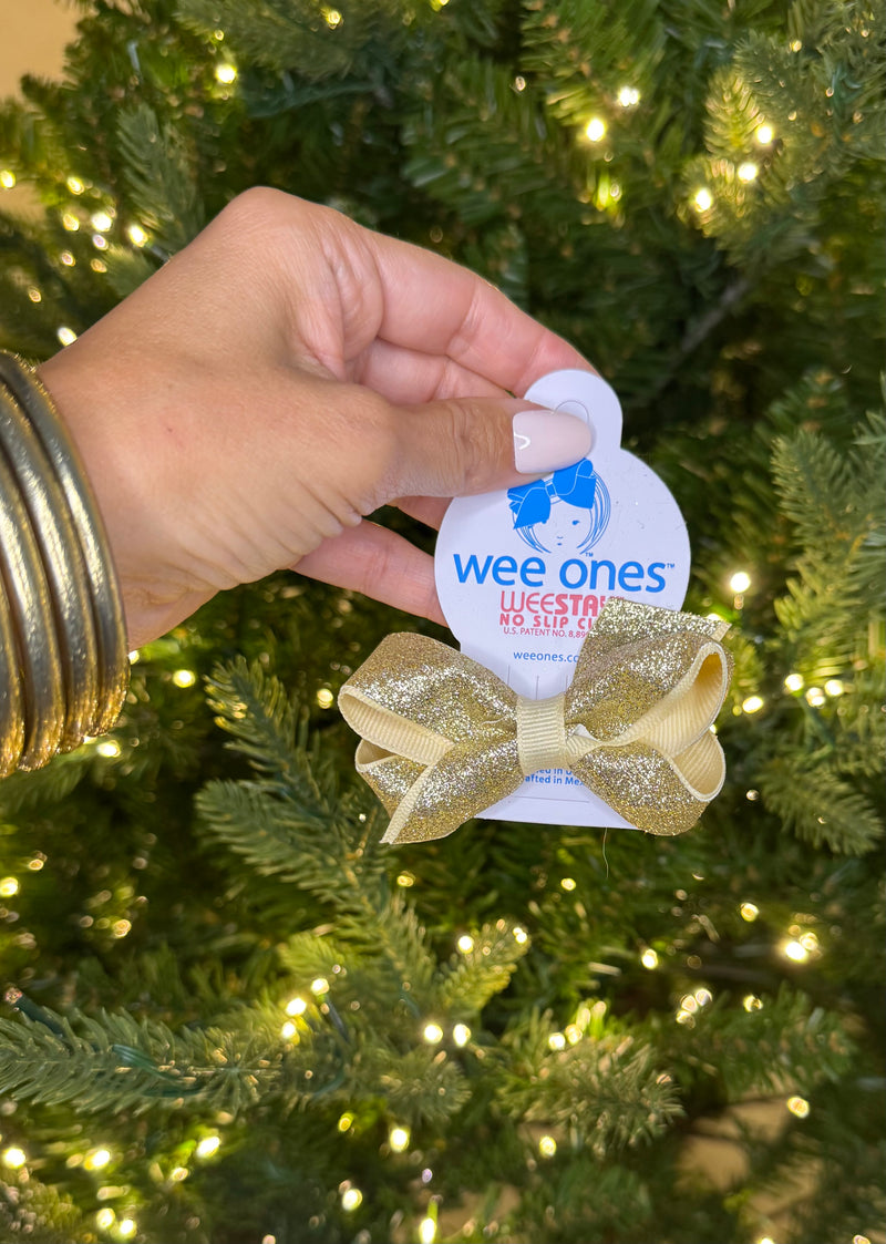 Mini Glitter Vinyl with Grosgrain Underlay Hair Bow - GOLD