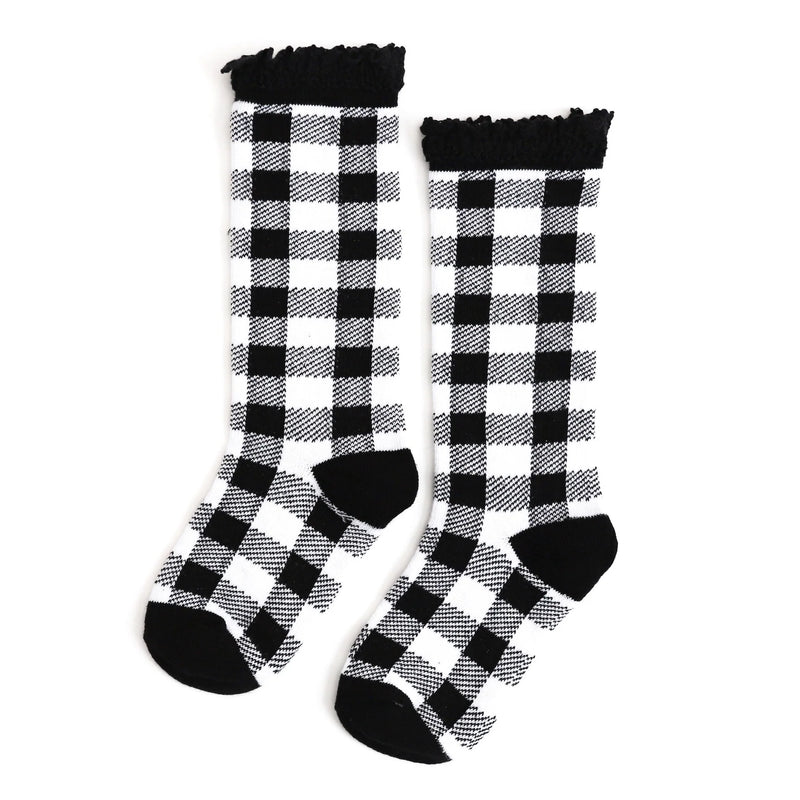 Little Stocking Company -Buffalo Plaid Lace Top Knee High Socks