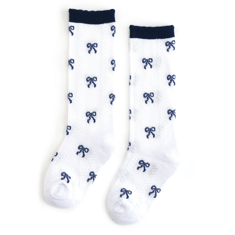 Little Stocking Company - Navy Bow Scalloped Knee Socks