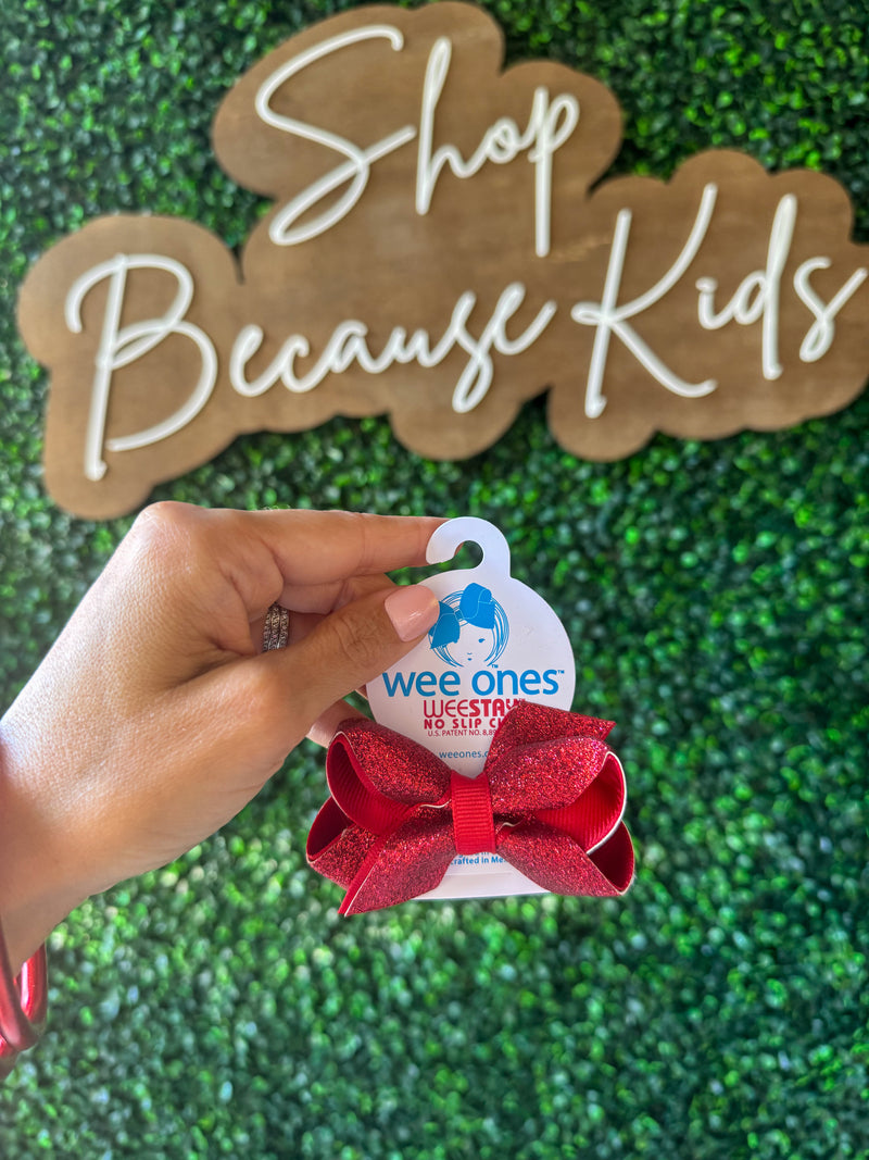 Mini Glitter Vinyl with Grosgrain Underlay Hair Bow - Red
