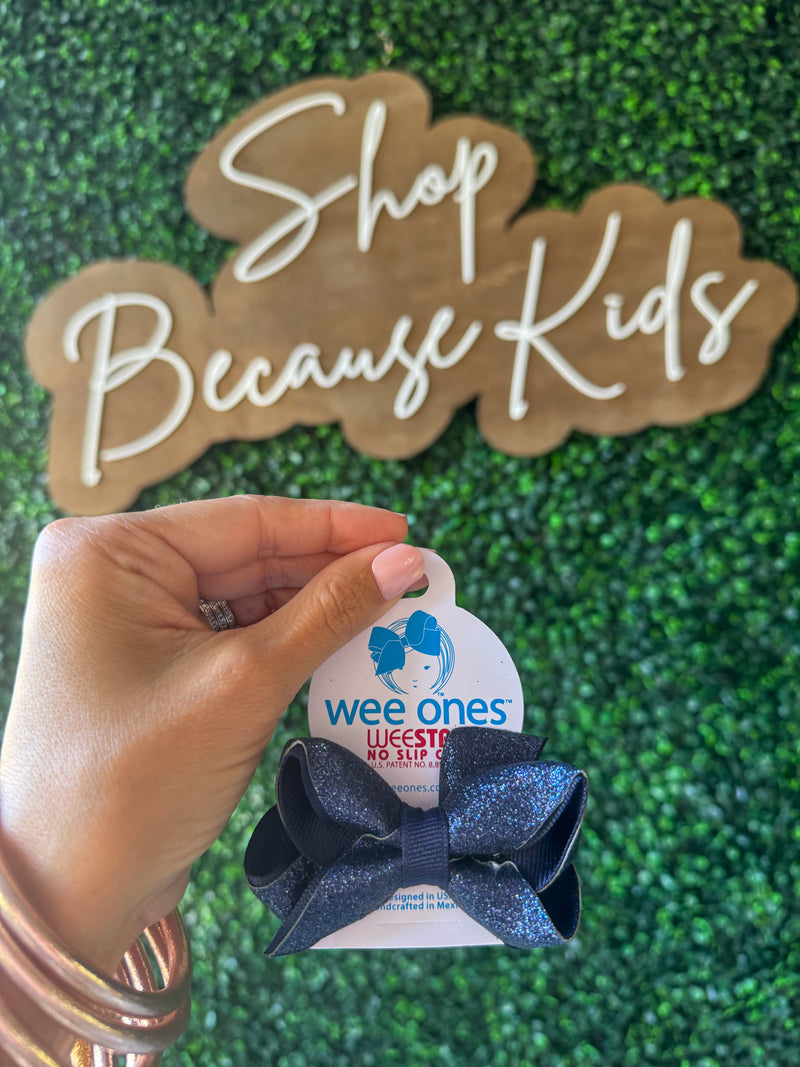 Mini Glitter Vinyl with Grosgrain Underlay Hair Bow - Navy